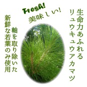 リュウキュウマツ(リュウキュウアカマツ)は成長が早く、葉はアカマツと同じように柔らかい感じがします。石垣島は温暖なため新葉が出る期間も長く、若い葉を収穫できます。